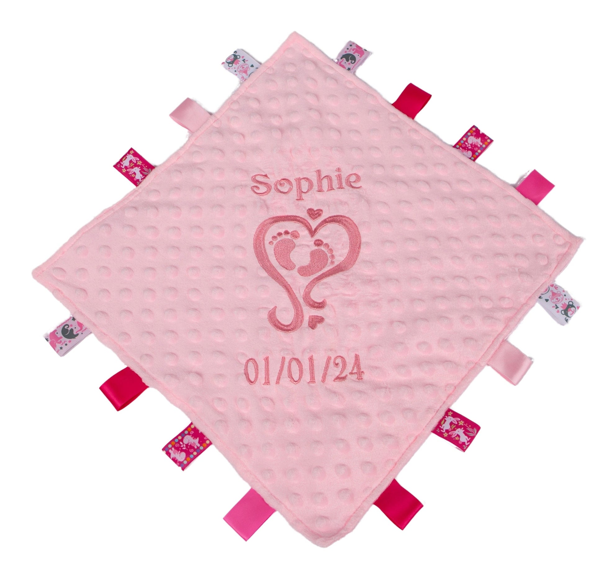 This sensory taggy square is the perfect keepsake for babies and children alike.