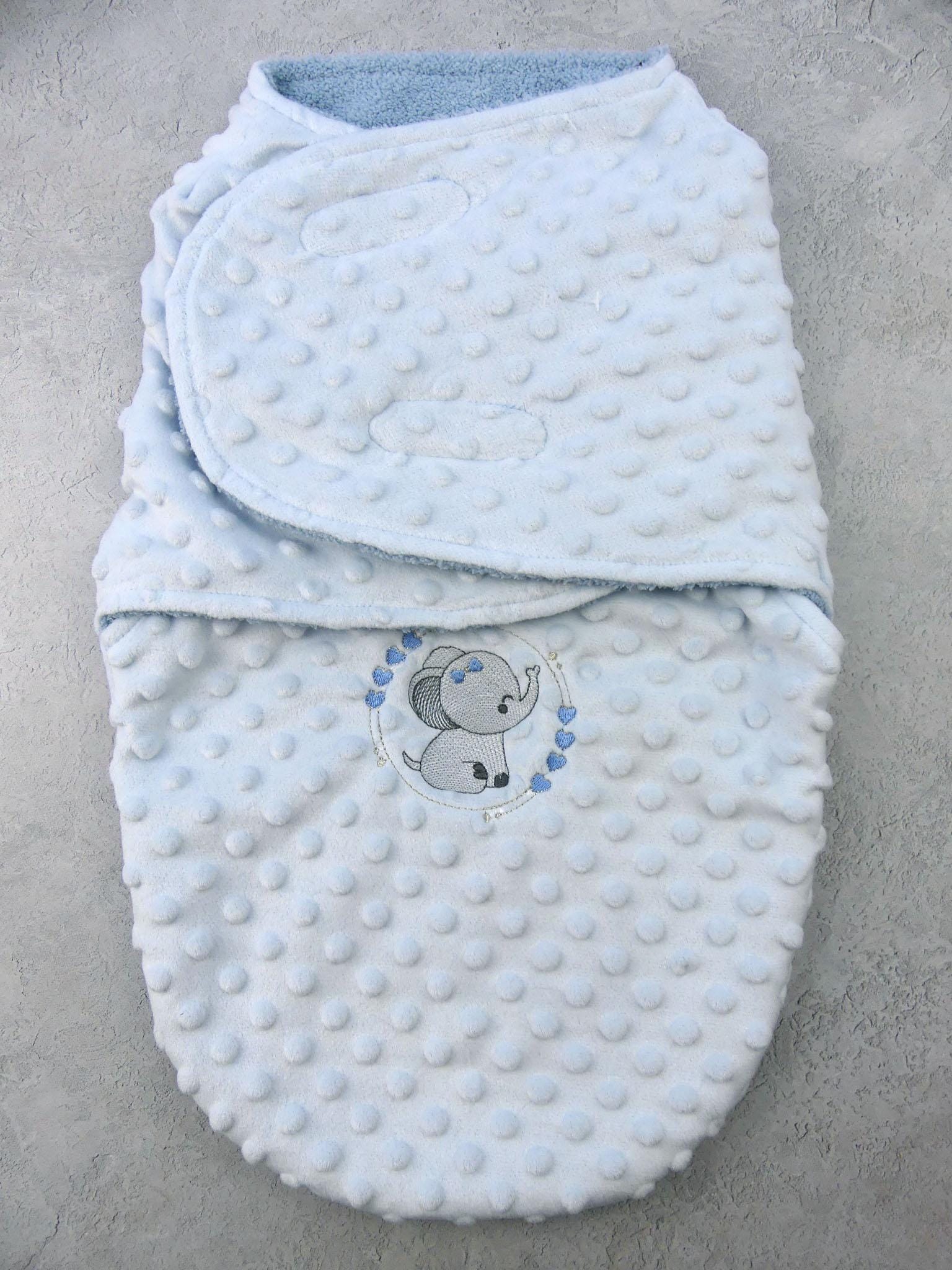 Babies Elephant Theme Swaddle Wrap Blanket 0-3 Months Fluffy Lined Baby Wrap Blanket Personalised name added with Embroidery