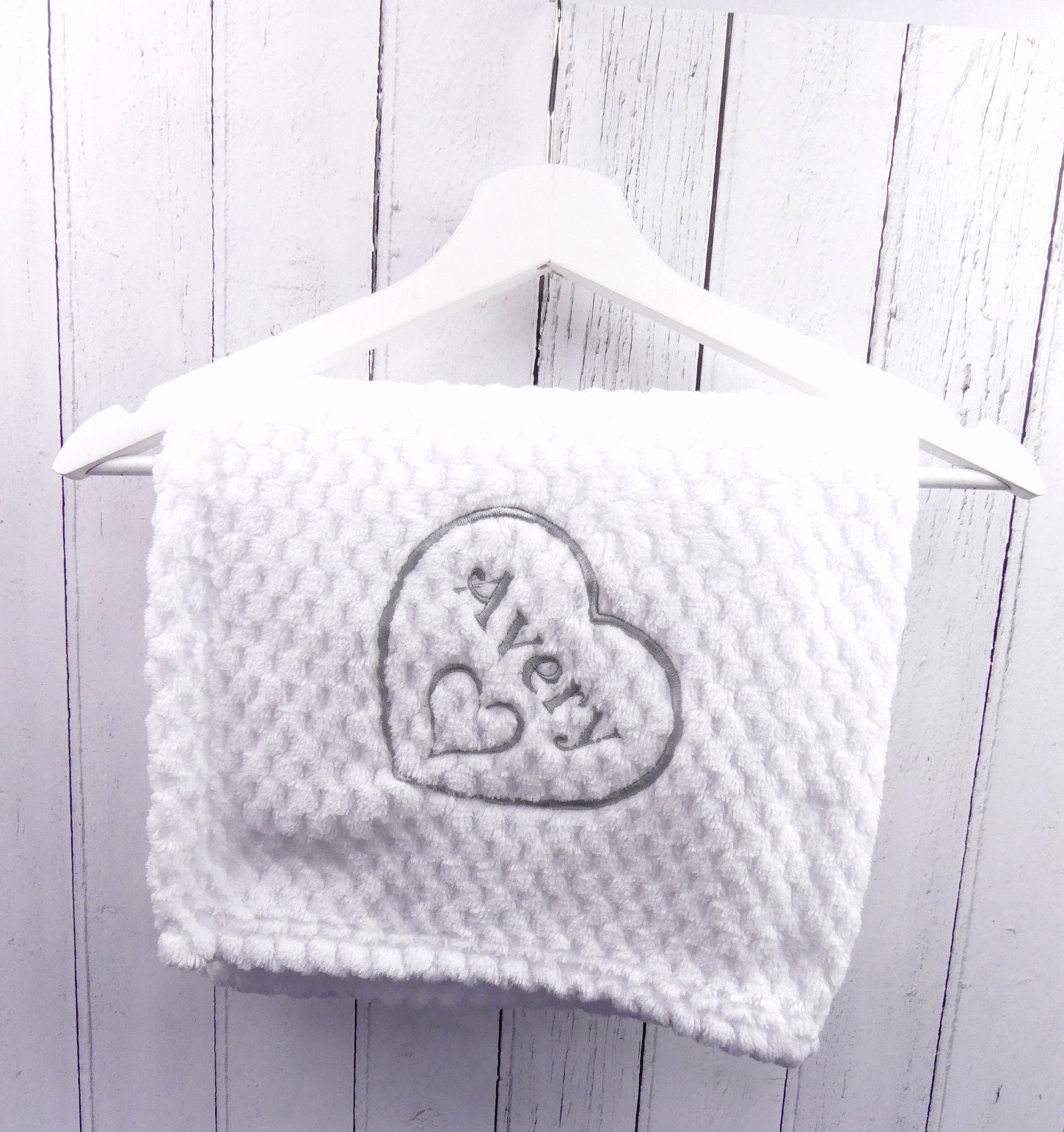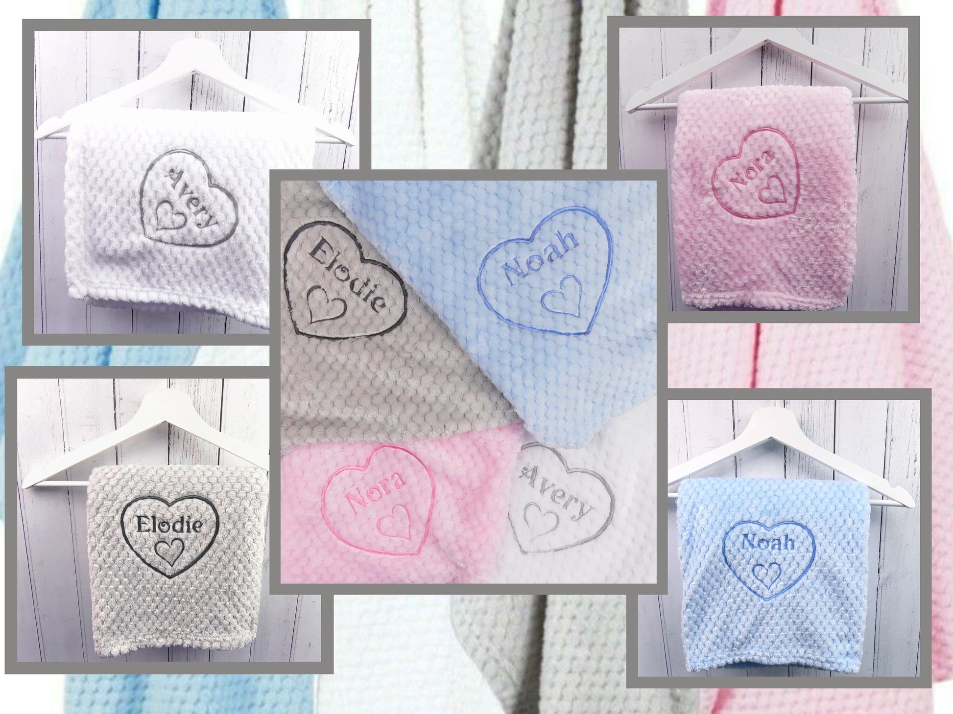 Baby Blanket Personalised Name in Heart Design Soft and Fluffy 75cm x 90cm