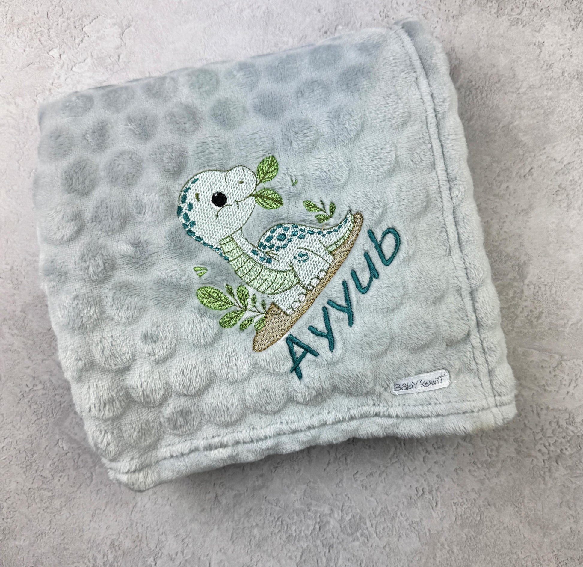 Baby Dinosaur Embroidered Blanket Personalised with Baby's Name 90cm x 70cm